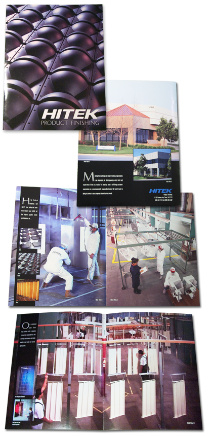 HiTek Product Finishing had recently expanded into a second location and wanted to quickly fill the new capacity they'd purchased. To highlight the new facilities and better show their capabilities and attention to detail, this twelve-page brochure made extensive use of custom on-site photography to give potential customers a 'virtual tour' of their two plants, in context with a presentation of the various finishing processes that HiTek makes available. Our unique art/technical background allowed us to clearly understand what was really important in crafting our visual message - the images and context that would truly reach potential customers in a way that would encourage further contact and interest. Site photography was completed in a single day, with a follow-up day to obtain detail shots of particular finishing processes. By coordinating our work with their schedule and supervisory staff, we were able to develop the virtual tour concept with minimal impact to their day-to-day production. Results Distributed by sales representatives and at trade shows, the brochure has been a big success for HiTek, with a number of new clients coming on-board shortly after the campaign began. Many asked for specific finishing services highlighted in this brochure, having seen details there that piqued their interest. Reaching the customer in a language they understand is vital in any promotional package, and our ability to understand our client's particular products and services, in the language of their own technical staff, is something that consistently sets us apart from other firms in our field. |
